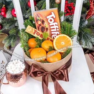 Праздничный блеск - коробка с шоколадом и апельсинами