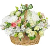 Нежные кустовые розы, эустомы и альстромерии — создают великолепную гармонию в этой корзинке. Трогательный атласный бантик служит ненавязчивым элементом декора. Цветочная корзина станет отличным дополнительным украшением интерьера вашей гостиной или спальни. Вы можете сделать романтический презент своей девушке, вложив в корзинку открытку с теплыми пожеланиями. Цветы всегда будут беспроигрышным вариантом к любому поводу.