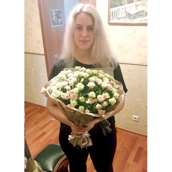 Доставка в указанное время, красивый букет, но розочки немного отличаются по предупредили до доставки, прислали фото. В целом довольна работой магазина.